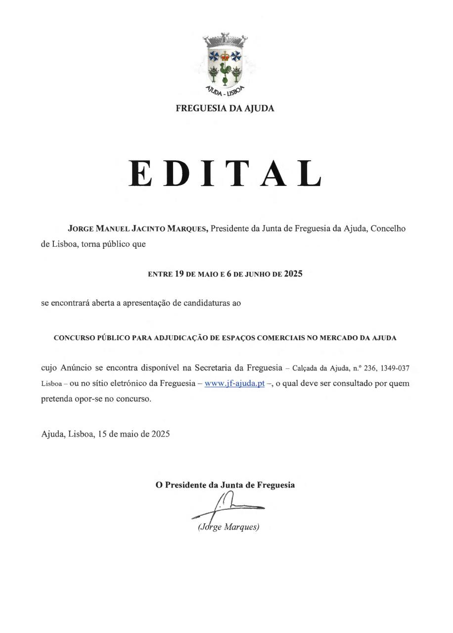 Edital - 3º Concurso para a adjudicação de espaços comerciais no Mercado da Ajuda